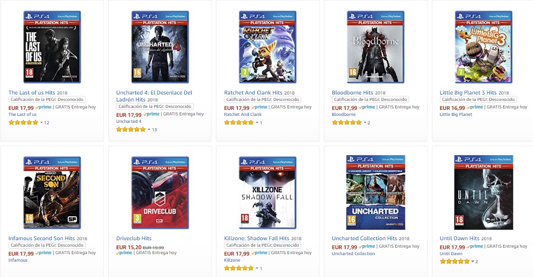 También tenemos una selección de PlayStation Hits, juegos clásicos de PS4 que oficialmente cuestan 19,90€, a 17,99€ la unidad o dos juegos a escoger por solo 30€.